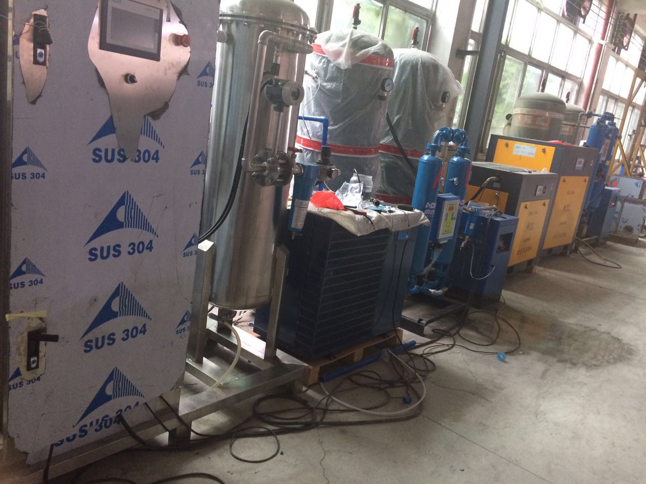 廣州佳環電器科技有限公司(臭氧發生器生產廠家)800克臭氧發生器現場,江蘇800克臭氧發生器現場安裝圖,客戶那邊是一個廢水處理廠,50噸水每小時的處理量,用了2臺800克臭氧發生器,期主要目的就是用于滅菌,整體處理流程,生化,霧化,臭氧,加藥,最后到沉淀池,達到排放標準