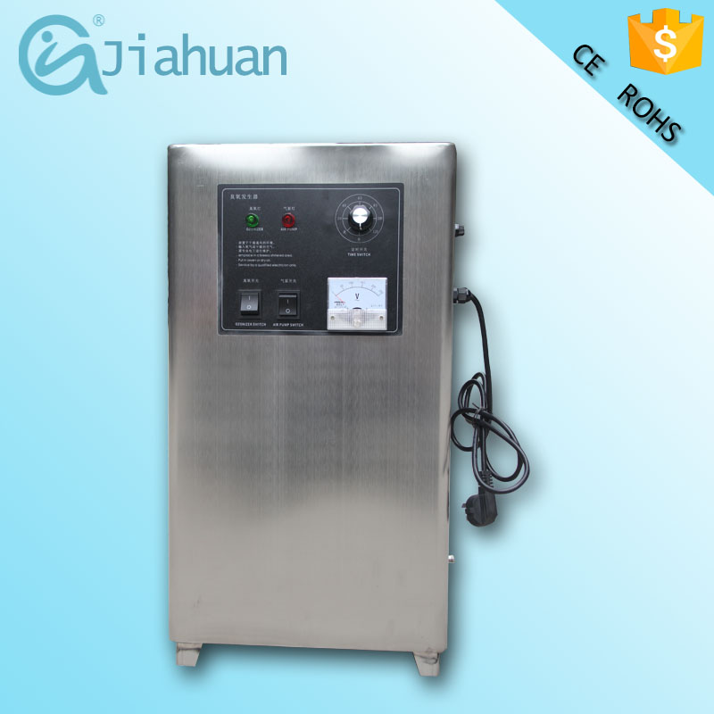 臭氧配置列表 一、HY-005-10G臭氧發生器: (一)、產品組成: 10G電源模塊 (1個) 10G石英管 (1個) 電流表 (1個) 電源指示燈 (1個) 臭氧指示燈 (1個) 風扇 (2個) 臭氧輸出口 (1個) 氧氣輸入口 (1個) 120分鐘定時開關 (1個) 電源保險 (1個) 氣 泵 (1個) (二)、產品特點: 1、風冷,單冷設計 2、空氣、水處理兩用 3、外殼為不銹鋼 4.機器自帶定時器(120分鐘) (三)、設備參數 機箱尺寸:32*26*58cm 包裝尺寸:38.5*32.5*71CM 臭氧產量:10g/h 輸入電壓:220V 50Hz 功率:180 W 規格:箱式 機器重量:10.9KG 毛重:12.3KG 臭氧濃度:10-15mg/L 空間處理:200立方